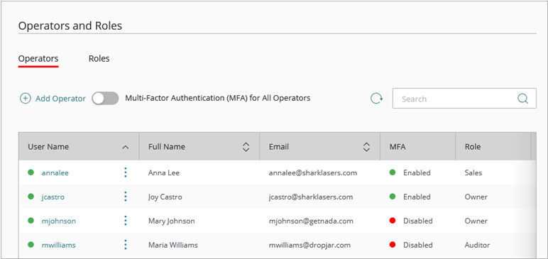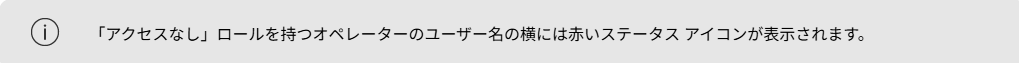 ページでそのオペレータのロールを「アクセスなし」に変更できます。「アクセスなし」ロールを持つ