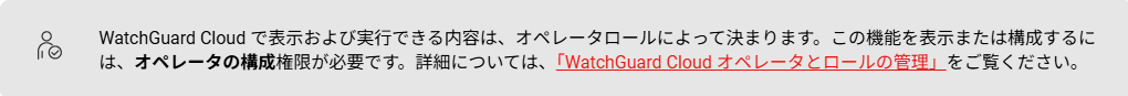 オペレータは、別のロールが割り当てられるまでWatchGuard Cloudにログインできません。オペレータ