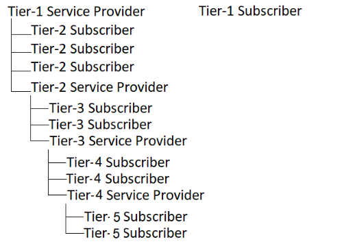 Tier-n アカウントは、サービス プロバイダーまたはサブスクライバーになることができます。