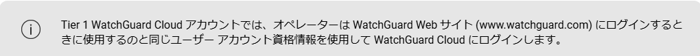 WatchGuard パートナーの場合、WatchGuard Cloud アカウントは自動的に Tier 1 サービス