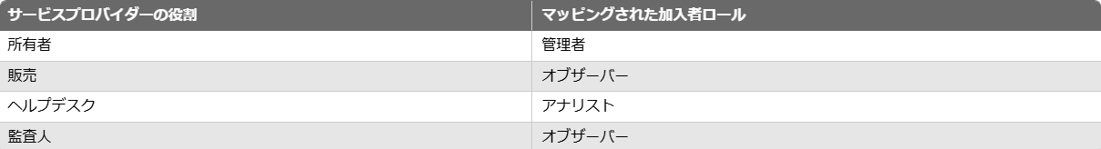 サービス プロバイダーとサブスクライバーには異なるオペレーター ロールが用意されているため、サービス プロバイダー