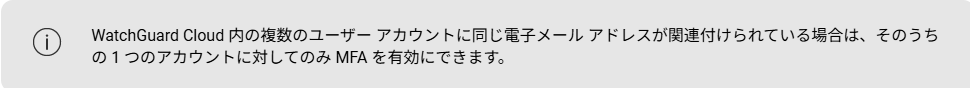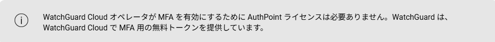 できます。WatchGuard Cloudは、WatchGuardの多要素認証サービスであるAuthPointをMFAに使用します。