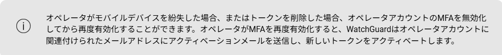 WatchGuard オペレータ アカウントの MFA に関連する一部の管理アクションについては、お客様または