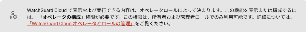オーナーまたは管理者のロールを持つオペレータは、自身のWatchGuard Cloudアカウントまたは管理下