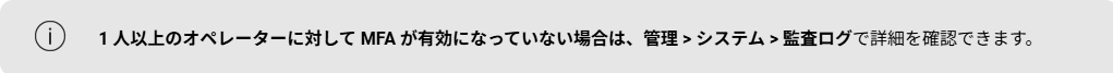 のアカウント内の任意のオペレータに対してMFAを有効にできます。また、自身のアカウント内のすべて