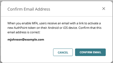 MFAを有効にすると、WatchGuardはオペレータアカウントに関連付けられたメールアドレスにアクティベーション