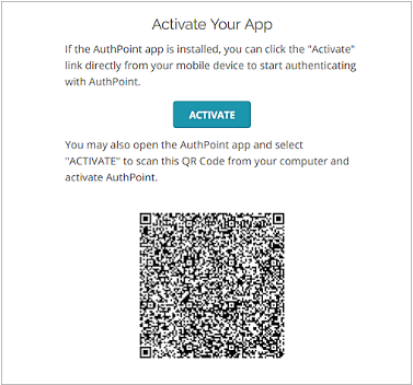 「AuthPointへようこそ」ページが開き、アクティベーションリンクとQRコードが表示されます。